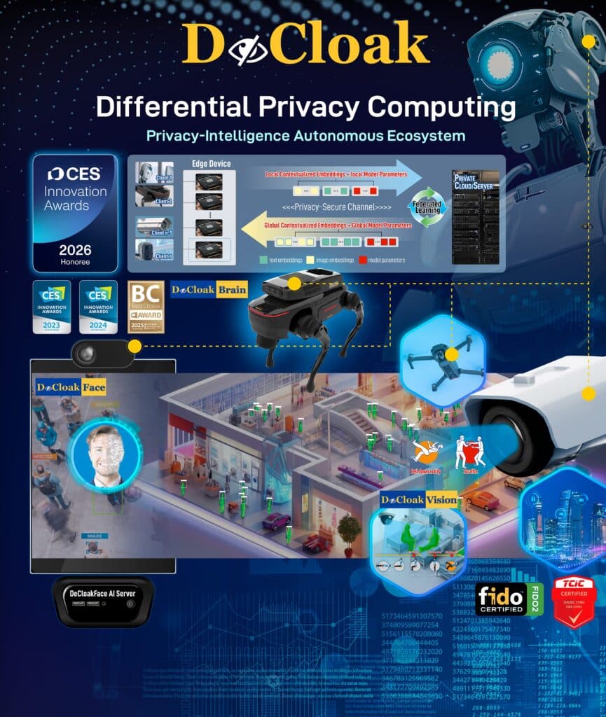 DeCloak Intelligences Co. will showcase its latest privacy-enhanced AI innovations at CES 2026, led by its award-winning DeCloakBrain™ Privacy-Intelligent AI Robotic Decision System, recognized as a CES 2026 Innovation Awards Honoree.