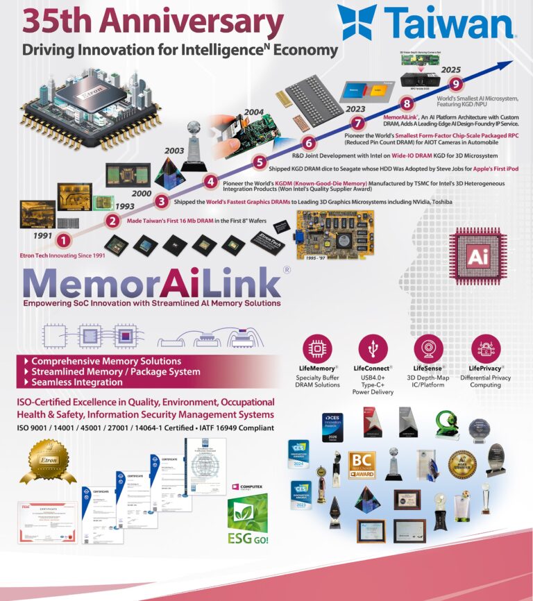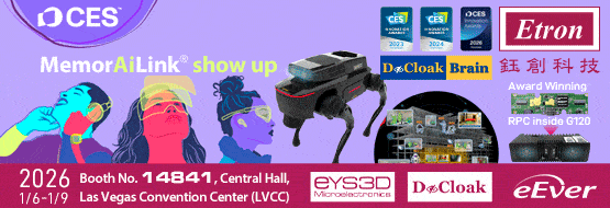 At 2026 CES, Etron will showcase the RPC® inside G120 subsystem, which recently won the Taiwan Hsinchu Science Park 2025 Innovative Product Award. This solution incorporates Etron’s innovative RPC DRAM®, which delivers x16 DDR3 data bandwidth in a compact Known-Good-Die or FI-WLCSP package. Compared to standard DDR3, this approach simplifies wire bonding and packaging design, helping to reduce overall system costs. By integrating the RPC DRAM and Controller with 3D depth-sensing chips from our subsidiary, eYs3D, the subsystem offers an effective AI edge platform for miniaturized, low-power, and specific ASIC applications.