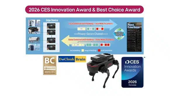 Amid the global race in AI development and rising concerns over privacy and security, DeCloak Intelligences, a subsidiary of Etron Technology (TPEx: 5351) dedicated to privacy‑first AI platform innovation, today announced that its flagship product, the ‘Privacy-Intelligent Robot General Decision-Making System ‒ DeCloakBrain™,’ has once again impressed the world by being named a CES 2026 Innovation Awards Honoree. This marks DeCloak’s third time receiving this prestigious international recognition, highlighting Taiwan’s global leadership in AI innovation and further reinforcing DeCloakBrain™’s leading position in robotic privacy computing and intelligent autonomous decision-making.