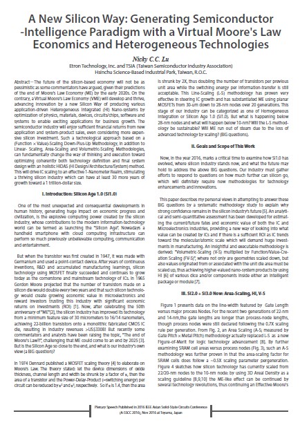 Author: Nicky C.C. Lu (Etron Technology, Inc. and TSIA).